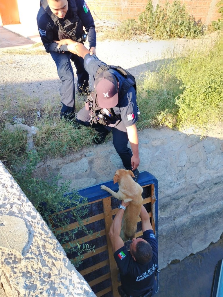 Agentes municipales de la estación Distrito Universidad en Cd. Juárez, atendieron un reporte ciudadano en la colonia Partido Escobedo, donde denunciaron el maltrato de un perro que permanecía amarrado dentro de un canal.
