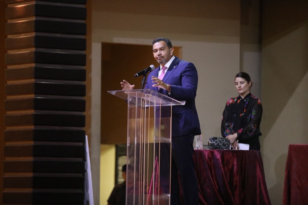 El alcalde Cruz Pérez Cuéllar entregó un cheque simbólico por 2 millones 814 mil pesos para el programa Becas de Acceso a la Universidad en la Universidad Tecnológica de Ciudad Juárez.