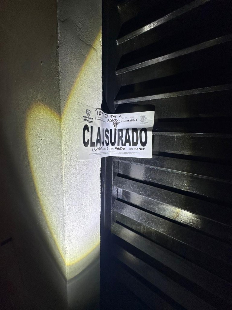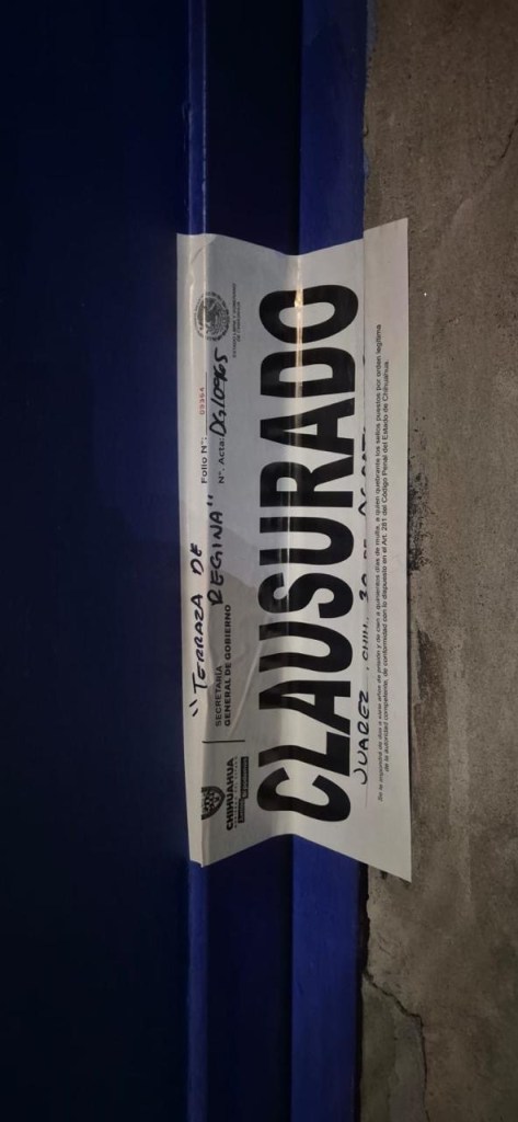 Las clausuras correspondieron a una tienda en Aldama, una licorería en Janos y siete negocios en Ciudad Juárez, entre ellos salones de eventos, abarrotes y tiendas de autoservicio con irregularidades legales.