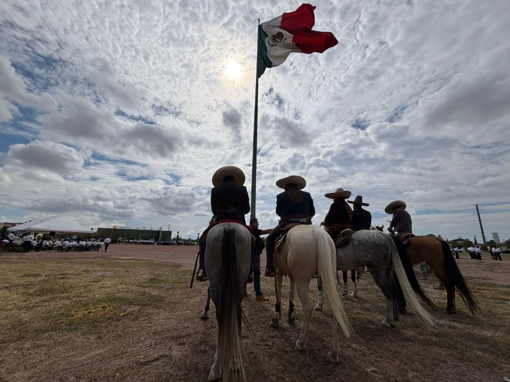 El alcalde Cruz Pérez Cuéllar encabezó el izamiento de la bandera en El Chamizal, dando inicio a las celebraciones cívicas por el mes patrio en Ciudad Juárez.