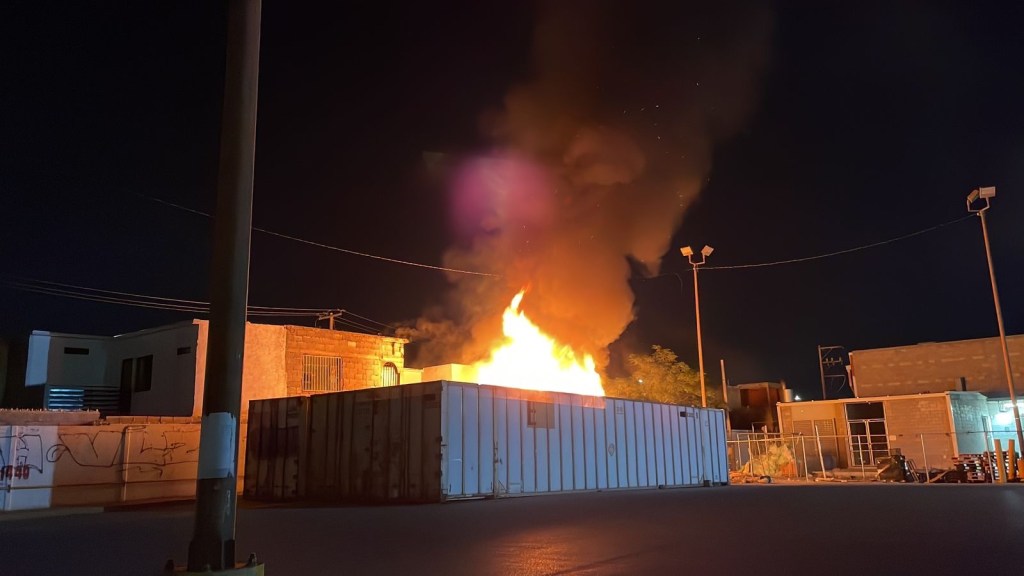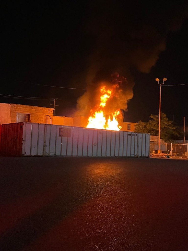 El hecho ocurrió en las calles José Mateo Torres y Manuel J. Clouthier, donde las cámaras de videovigilancia alertaron a policías municipales sobre el incendio en un depósito metálico.