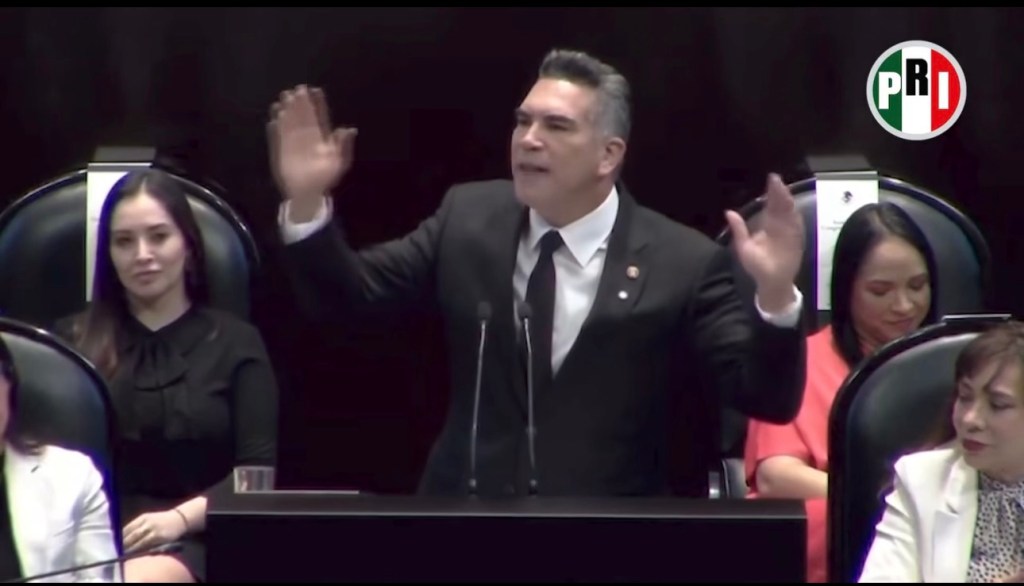 El senador Alejandro Moreno, presidente del PRI, criticó a legisladores de Morena durante la sesión del Congreso General y la entrega del primer informe de gobierno de Claudia Sheinbaum.