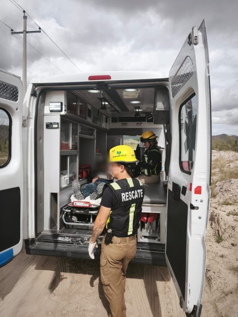 En Samalayuca, elementos de Protección Civil atendieron a una persona que resultó lesionada tras caer de una cuatrimoto. Fue trasladada de inmediato a un hospital para atención médica.