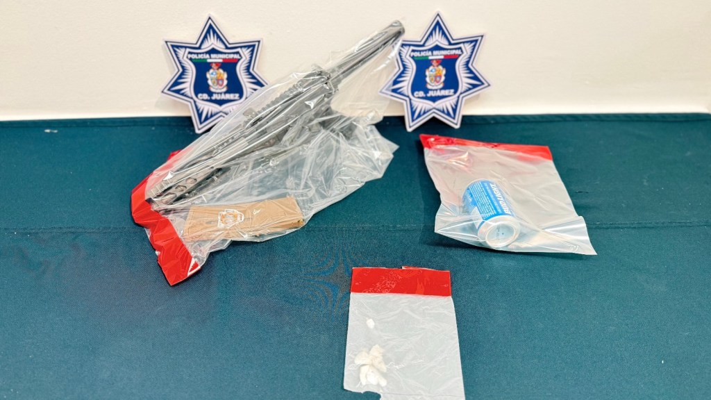 Durante la inspección preventiva, las autoridades aseguraron un arma larga calibre .223 con 30 cartuchos útiles, además de seis dosis de cristal y bebidas alcohólicas.