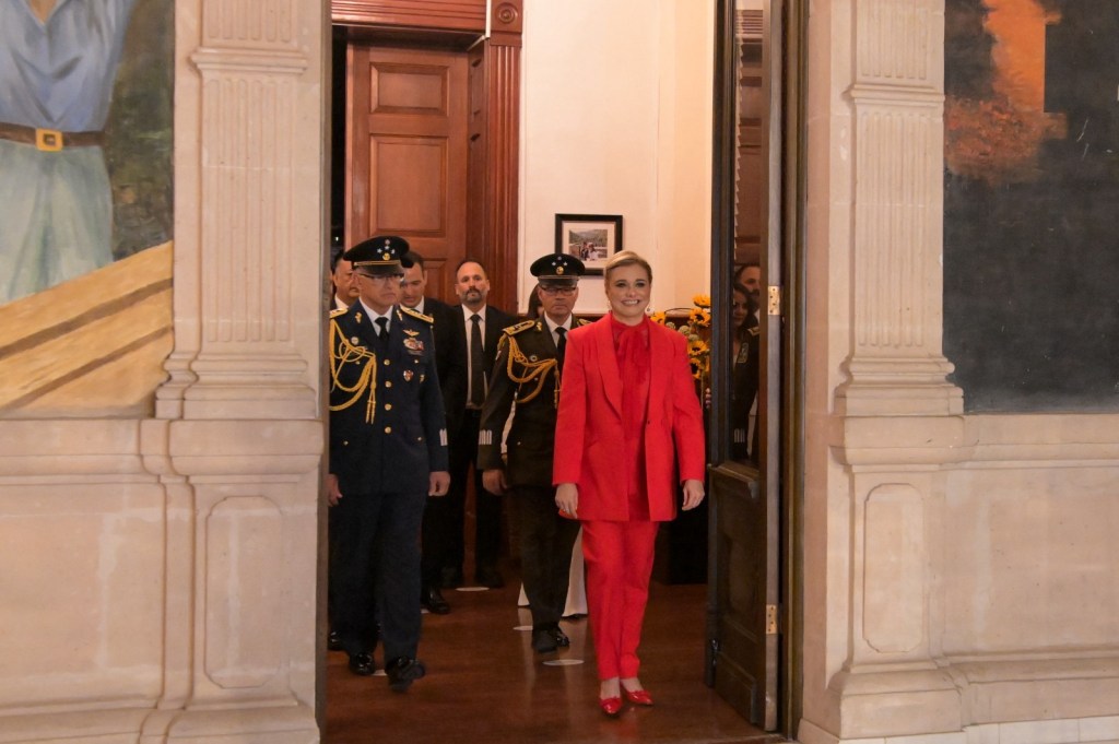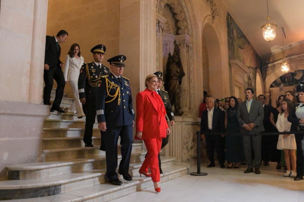 Durante el acto, la mandataria proclamó vivas a la dignidad, la paz y la unidad de Chihuahua, recordando además a los héroes nacionales desde el Balcón de la Patria en la capital.