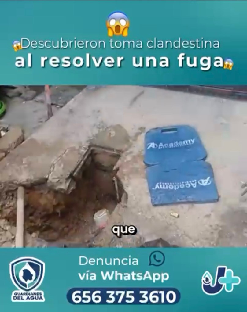 La Junta de Agua y Saneamiento solicita a la ciudadanía reportar robo o desperdicio de agua mediante WhatsApp al número 656-375-3610 con dirección, fotos o videos para inspección inmediata.