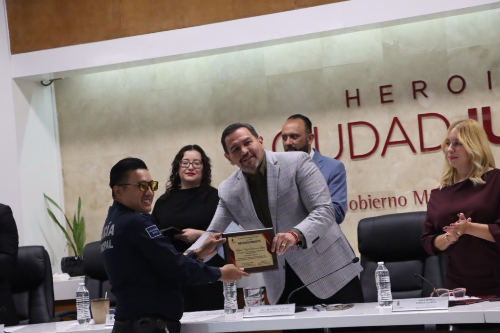 El Cabildo de Ciudad Juárez entregó reconocimientos a tres oficiales de la Secretaría de Seguridad Pública Municipal, quienes fueron distinguidos como “Empleados del año” por su servicio a la comunidad.