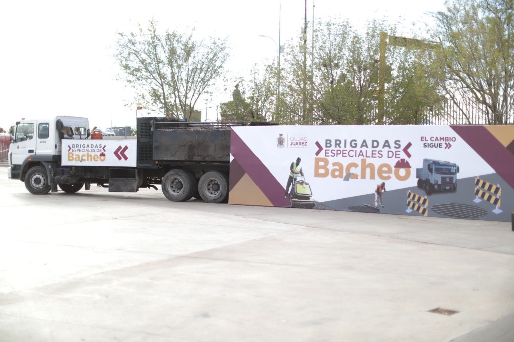 El presidente municipal Cruz Pérez Cuéllar inició el programa de brigadas especiales de bacheo en la Plaza de la Mexicanidad, con el objetivo de reforzar el mantenimiento de vialidades afectadas por lluvias recientes.