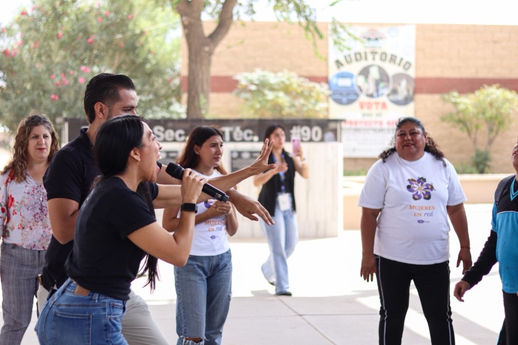 El Gobierno del Estado de Chihuahua, junto a la Red Mesa de Mujeres y la Comisión Estatal de Derechos Humanos, realizó una jornada de prevención y seguridad en la Secundaria Técnica 90 de Riberas del Bravo.