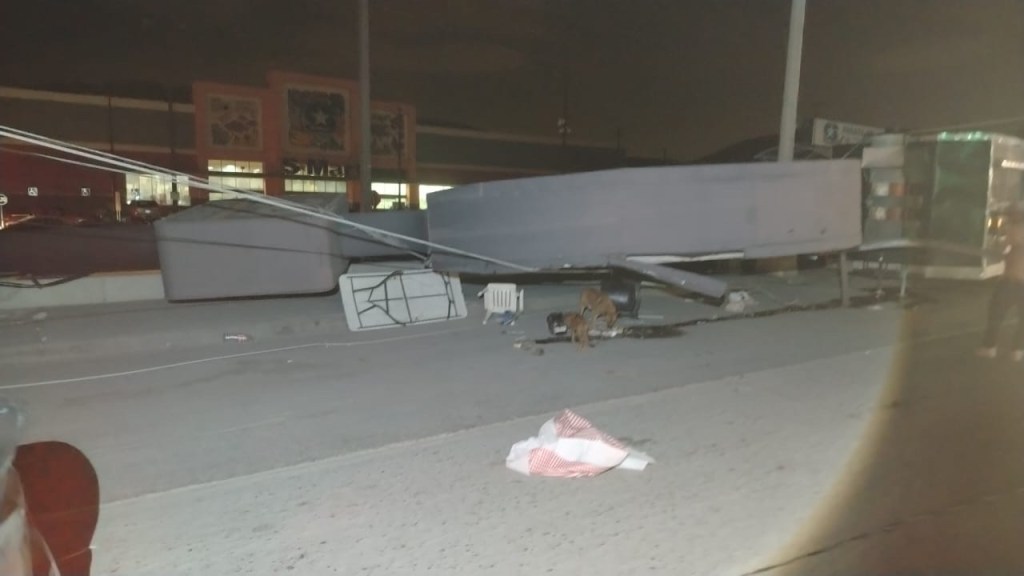 La Dirección de Protección Civil informó que un anuncio de supermercado cayó en Ciudad Juárez, tras los fuertes vientos registrados durante la tarde del jueves 25 de septiembre.