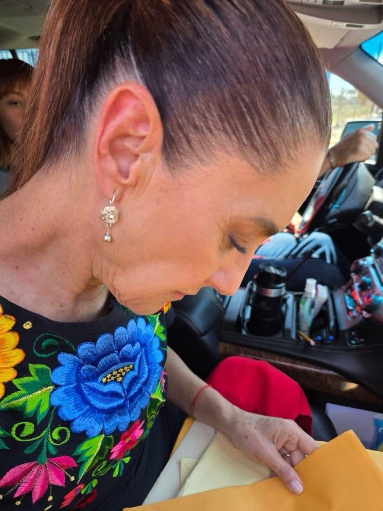 La Presidenta de la República plasmó su firma en el libro que narra la historia de Bárbara, reconociendo públicamente la trayectoria de vida de la agente municipal fronteriza.