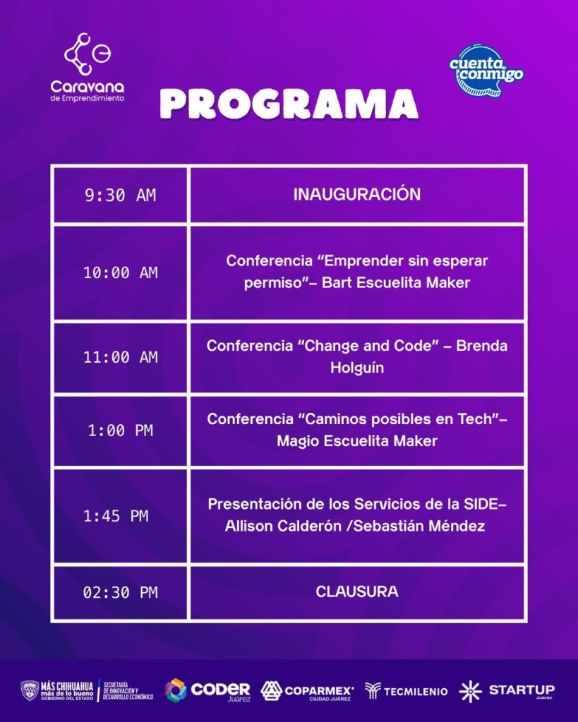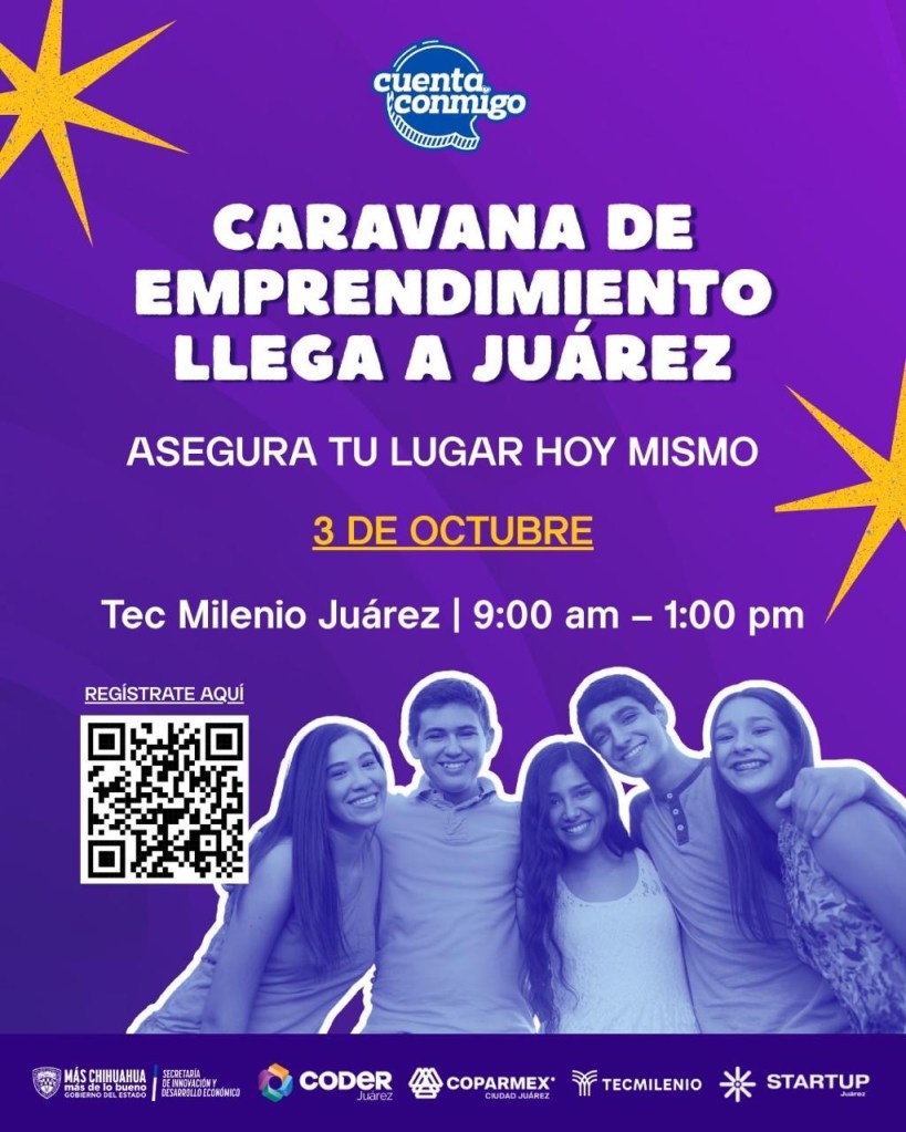El Gobierno del Estado de Chihuahua, mediante la Secretaría de Innovación y Desarrollo Económico, invitó a participar en la Caravana de Emprendimiento que se realizará en Ciudad Juárez el próximo 3 de octubre en el Tec Milenio.