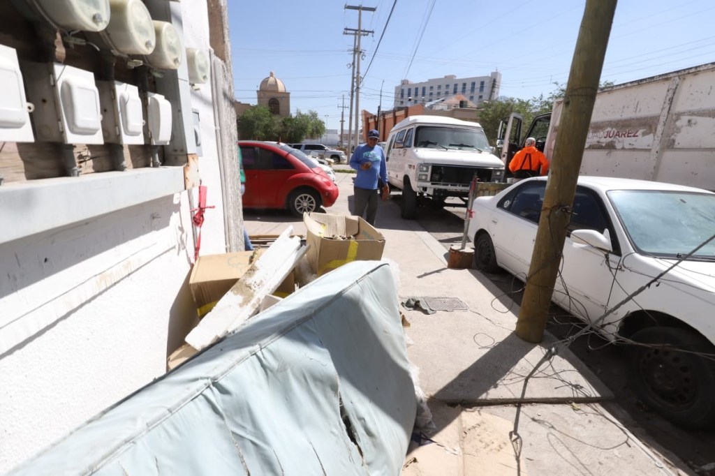 La Dirección de Limpia atendió un reporte ciudadano sobre desechos acumulados en la calle Ignacio Zaragoza y Fernando Montes de Oca, cerca de una plaza comercial en Ciudad Juárez.