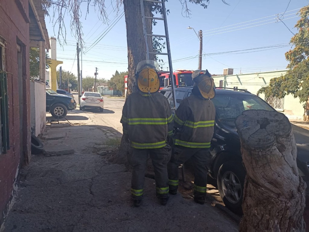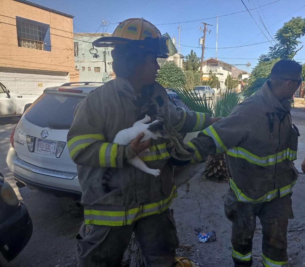 Elementos de Protección Civil atendieron un reporte en la colonia Partido Romero, donde se informó que un felino permanecía atrapado en la parte alta de un árbol.