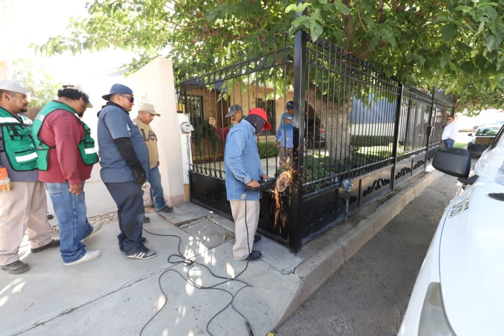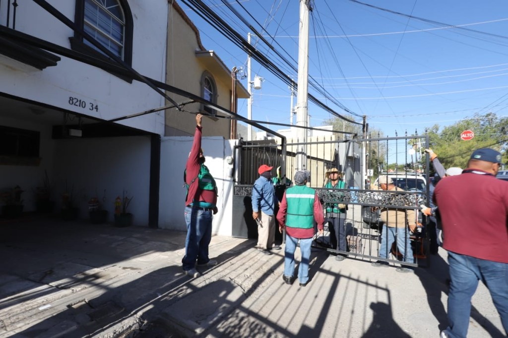 Se realizaron intervenciones en viviendas localizadas en el fraccionamiento Campestre Senecú y en Rincones de San Marcos, donde portones y barandales invadían la banqueta, impidiendo el libre paso.