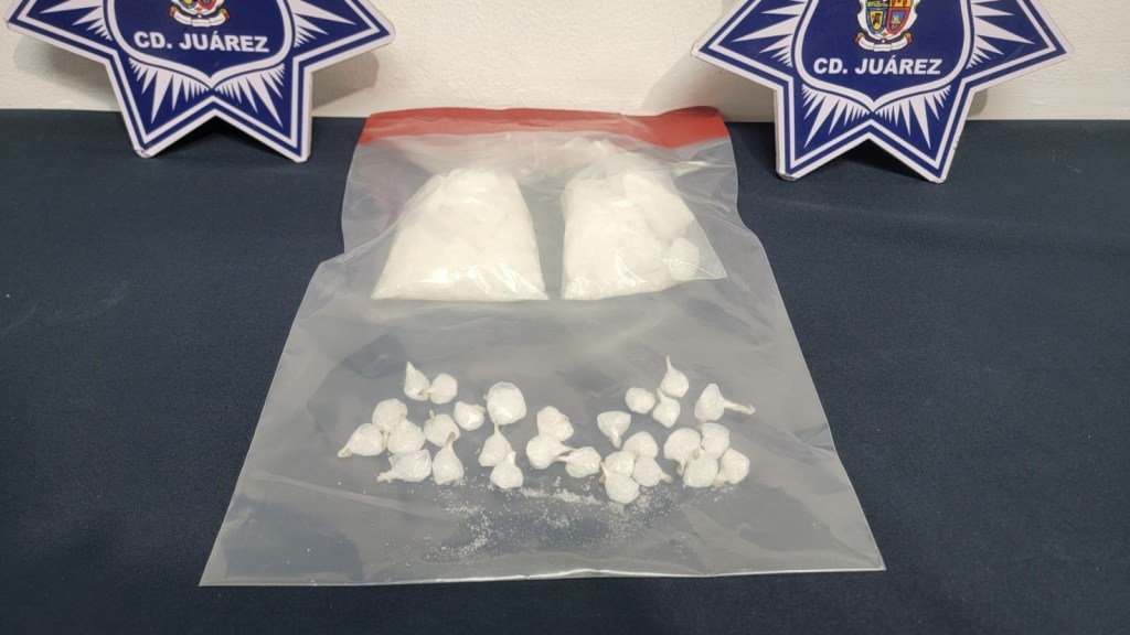 Tras marcar el alto, los agentes realizaron una inspección preventiva encontrando dos envoltorios con aproximadamente 200 gramos de cristal y 28 dosis de la misma sustancia.