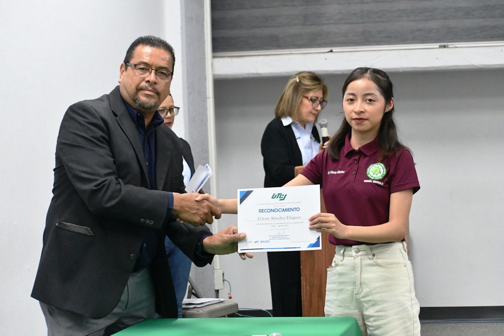 La Universidad Tecnológica de Ciudad Juárez realizó la entrega de reconocimientos a estudiantes y docentes de Mecatrónica y Energías Renovables, premiando el esfuerzo académico y el desempeño dentro de las aulas en los turnos matutino y vespertino.