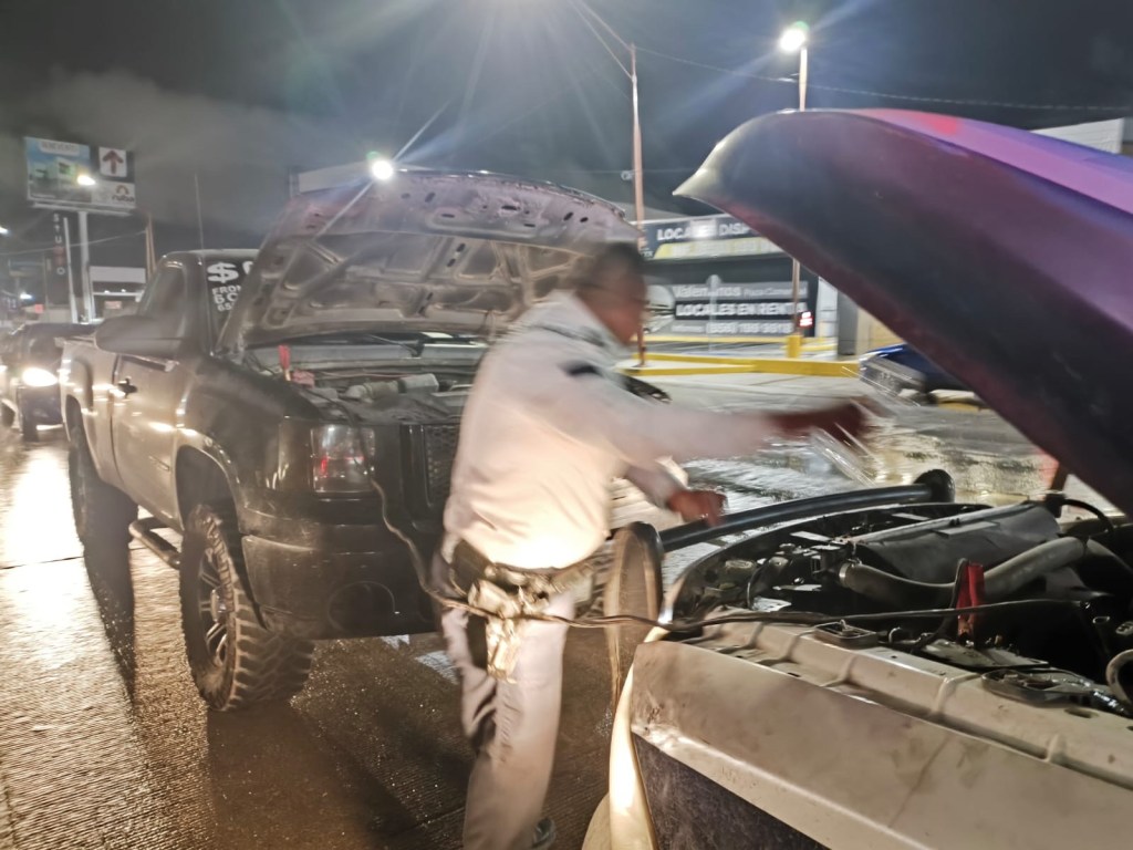 Los apoyos incluyeron reubicación de vehículos, paso de corriente y cambio de neumáticos. Agentes realizaron patrullajes en zonas con acumulación de agua para prevenir incidentes.