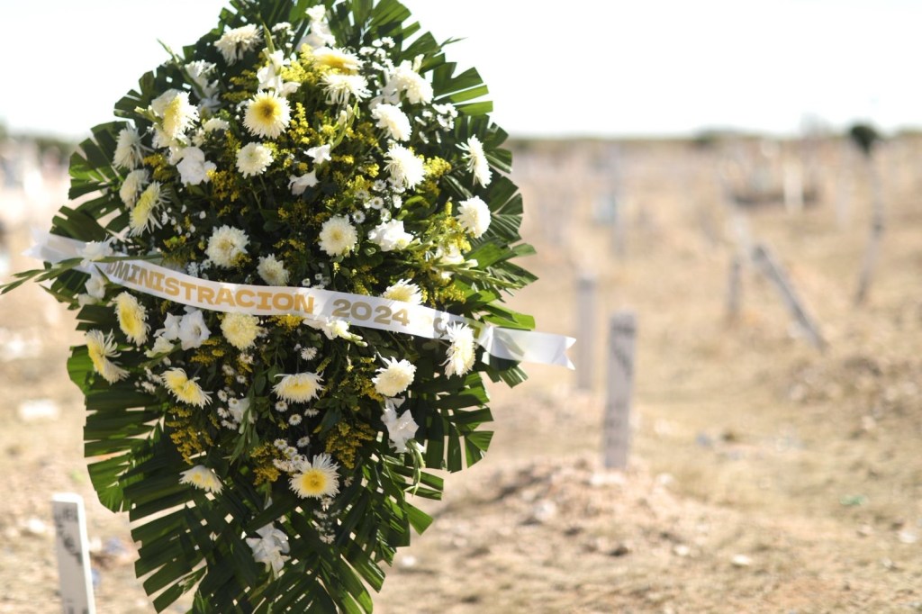 Al finalizar la misa, el alcalde y el sacerdote acudieron a la fosa común para realizar una oración por las personas no identificadas del panteón.