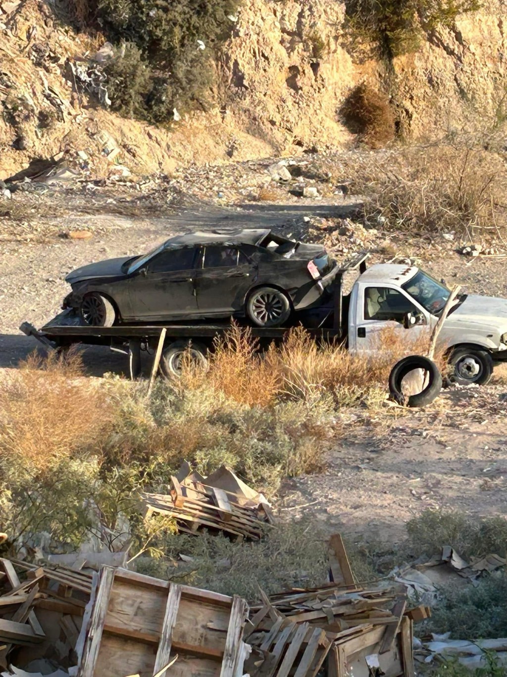 Pero dieron como diez. Así se llevaron un auto volcado en la salida del camino real en las calles Navojoa casi esquina con Camino Real. 📷Es lo que hay